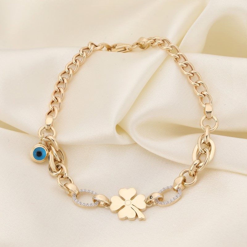 Kişisel tarzınızı yansıtacak semboller ve figürlerle bezeli altın bileklikler, tarzınıza özgünlük katacak. Nazar boncuğu, sonsuzluk işareti, hamsa ve kalp gibi klasik sembollerin yanı sıra, kişisel imza niteliğinde özel figürler de tercih edebilirsiniz.