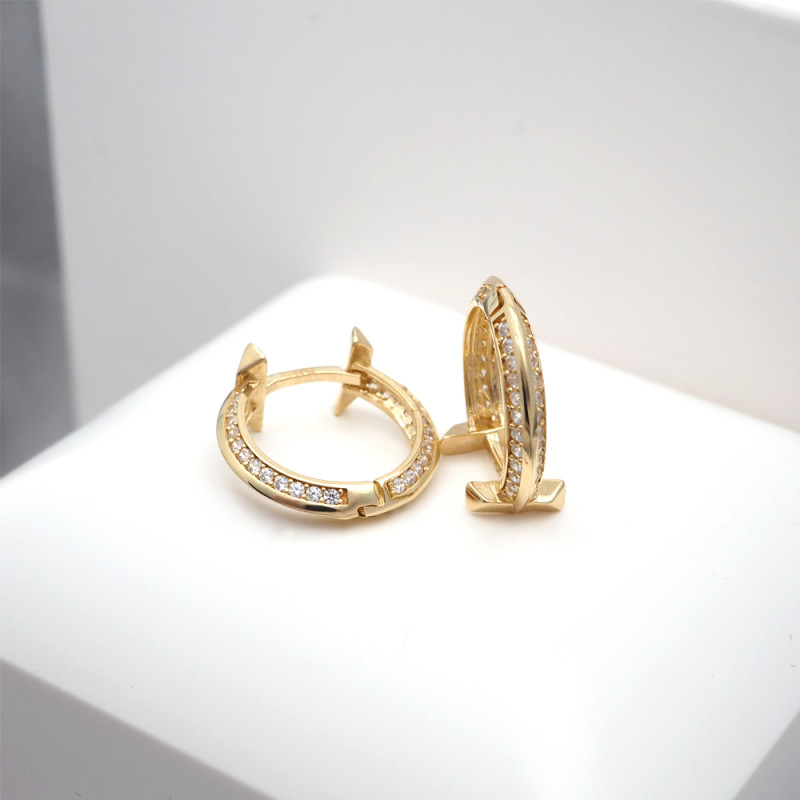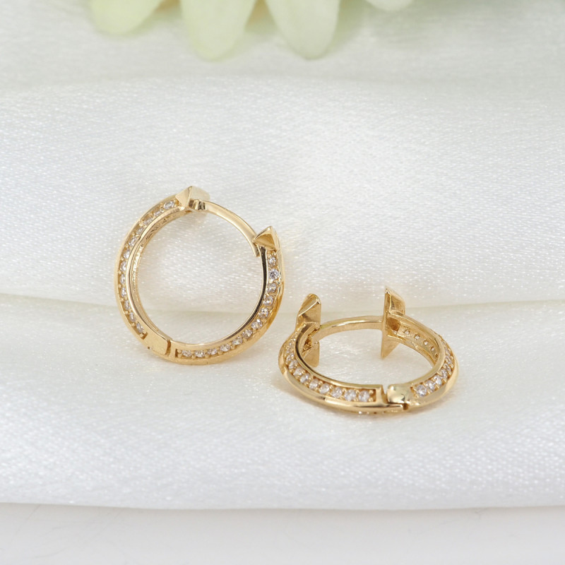 Taşlı altın halka küpe modelimiz, her zaman moda olan klasik bir tasarıma sahiptir. Trendlerden etkilenmezler ve her yaştan ve tarzdan kadın tarafından giyilebilirler. Hem günlük hem de özel günler için kullanılabilir. Spor bir tişört ve kot pantolonla veya şık bir elbise ve topuklu ayakkabılarla takılabilirler.