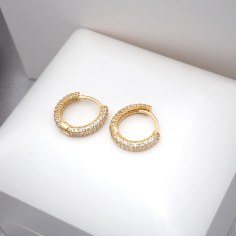 - Üç Sıra Taşlı Altın Halka Küpe modelimiz 14 ayar altından üretilmiş olup 1,96 gram ağırlığındadır.